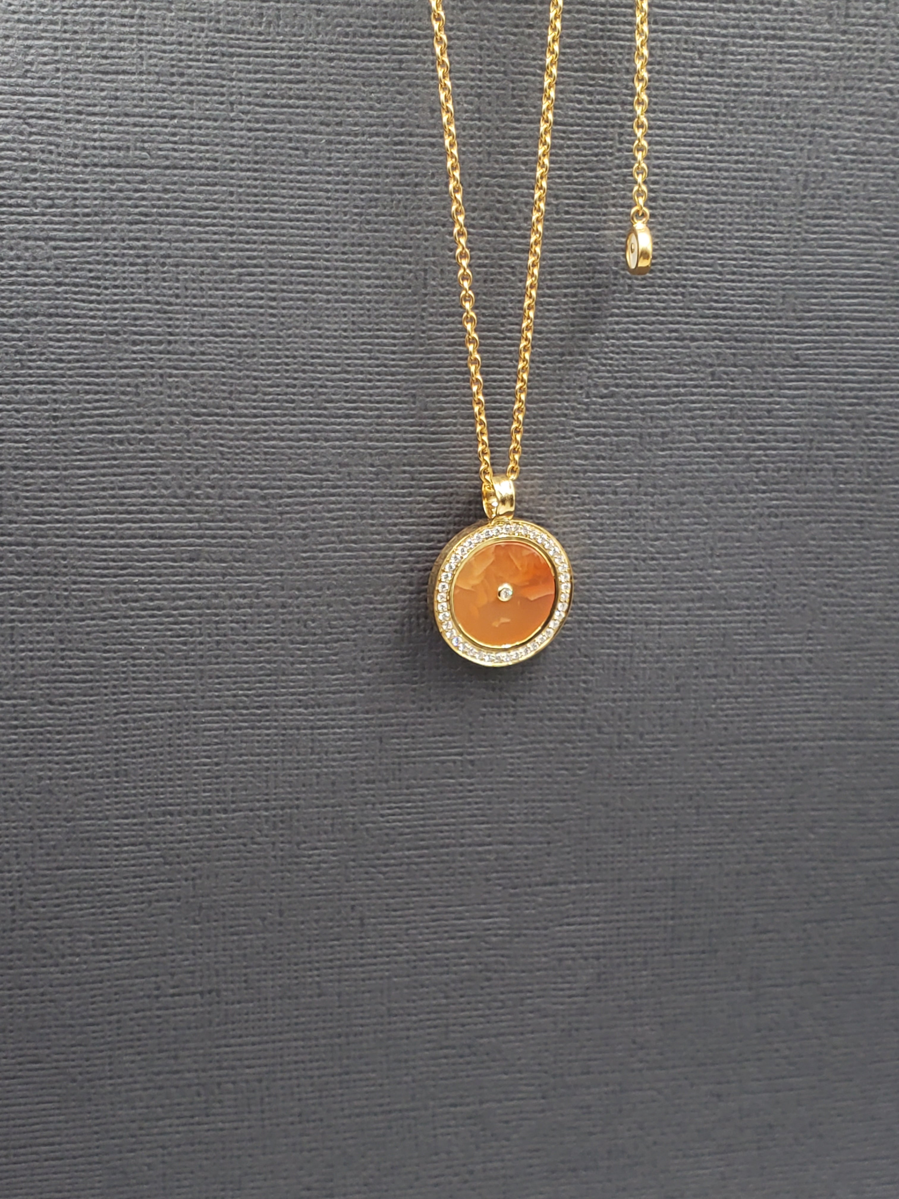 CARNELIAN WITH DIAMONDS & SAPPHIRES SUN PENDANT NECKLACE