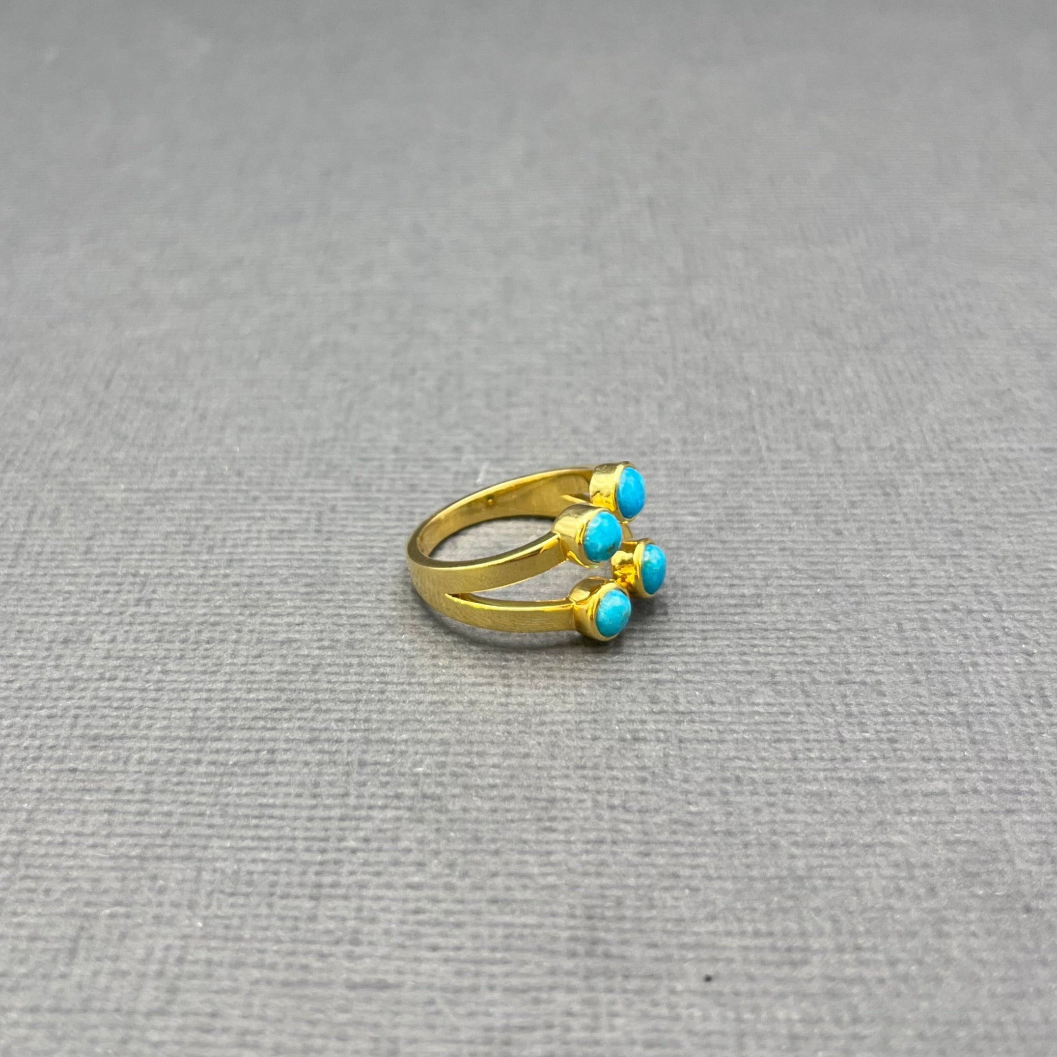 FOUR TURQUOISE OPEN GOLD RING