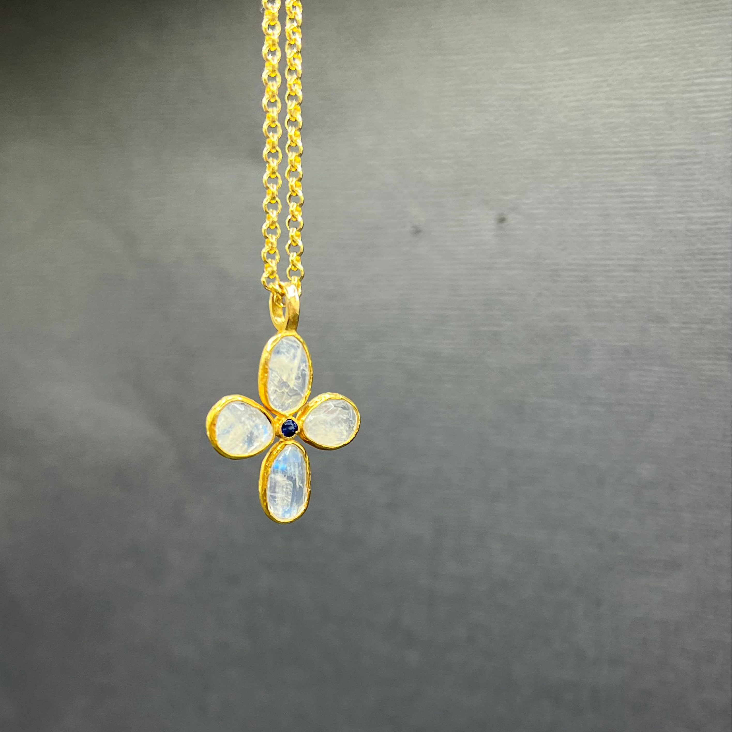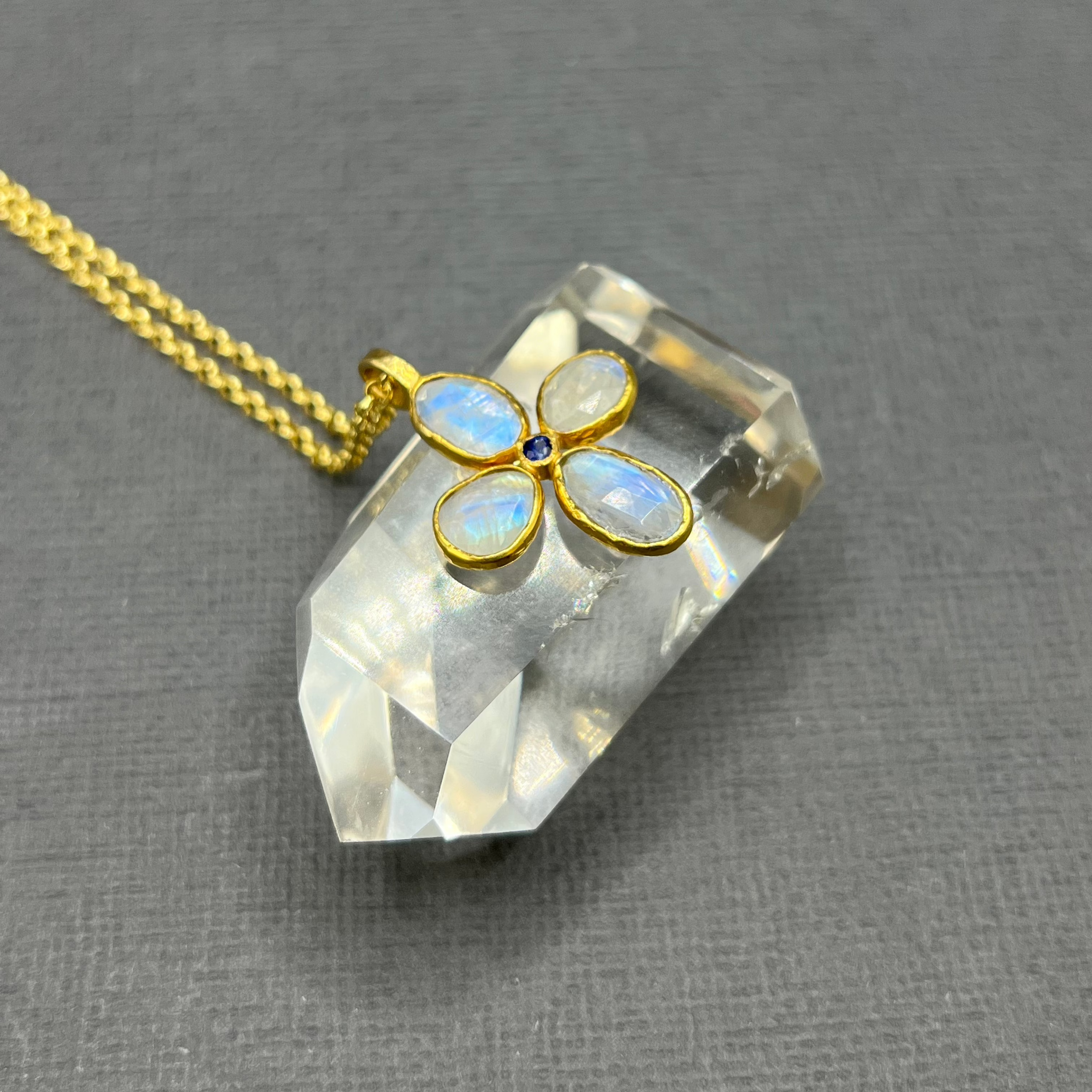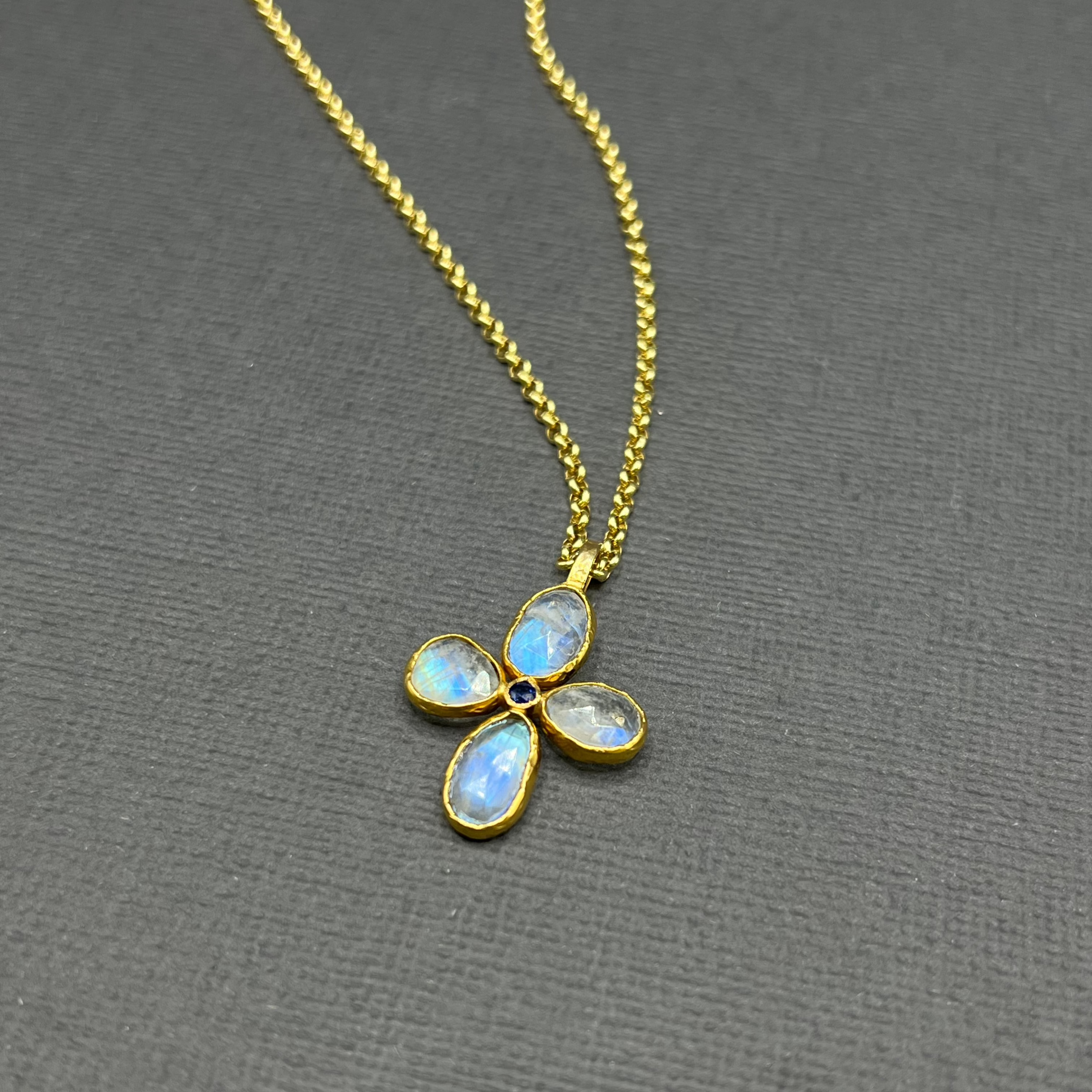 PRIMROSE MOONSTONE AND SAPPHIRE PENDANT NECKLACE