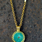 TURQUOISE EMERALD SIGNATURE GOLD NECKLACE