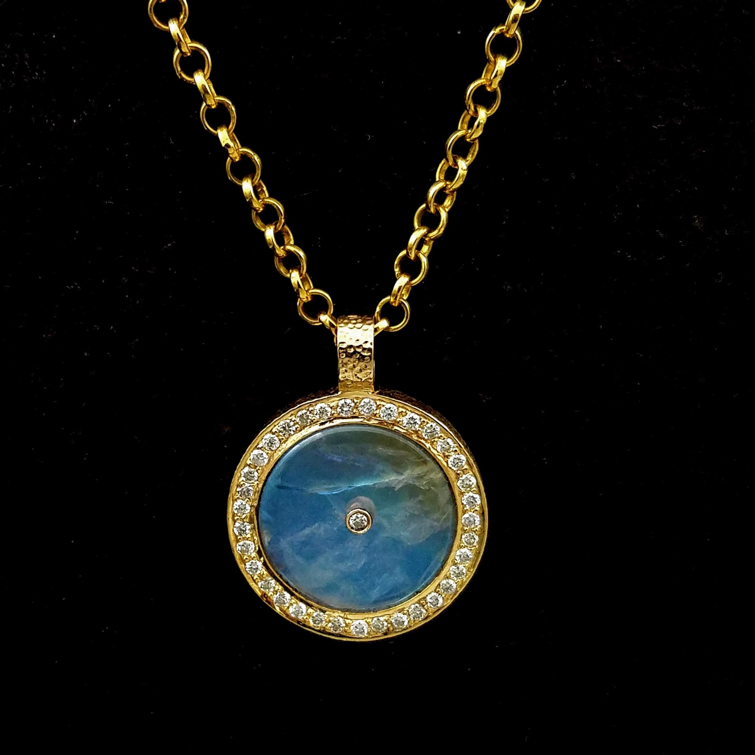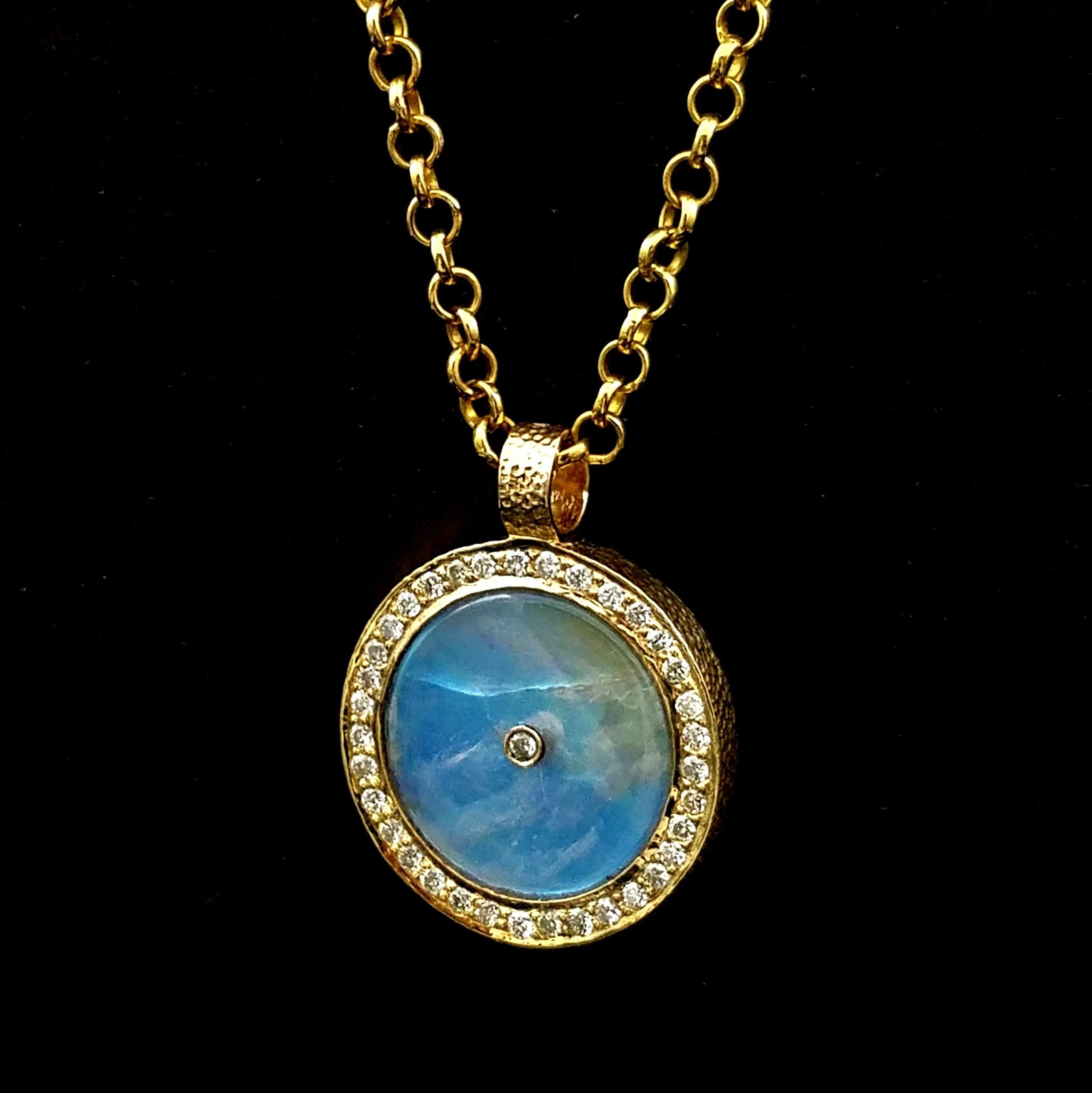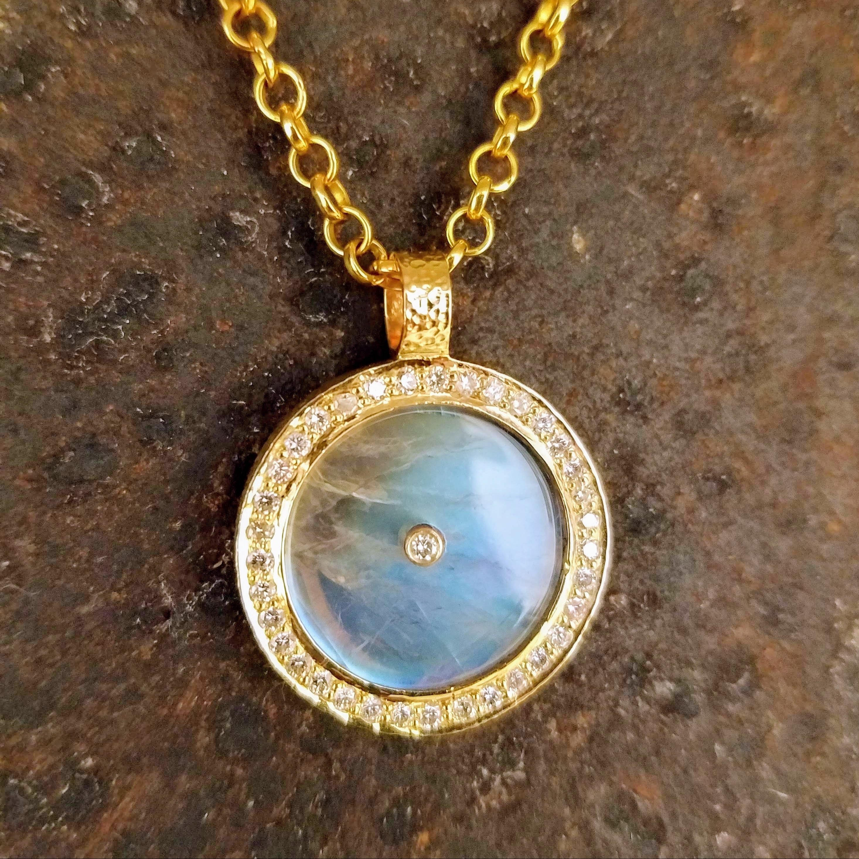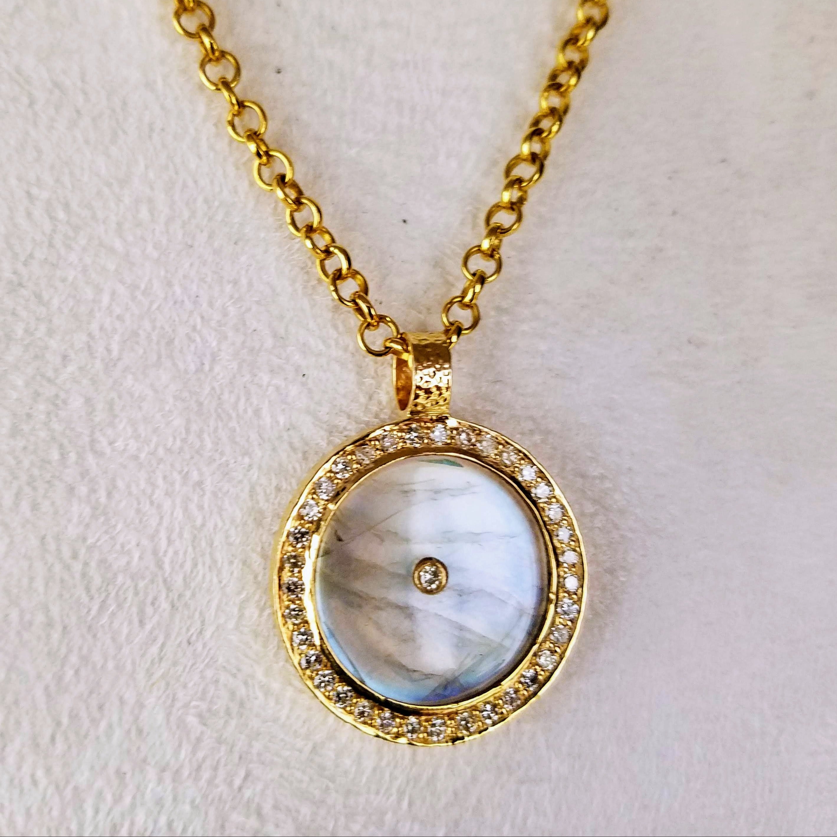 RAINBOW MOONSTONE PAVE DIAMONDS GOLD NECKLACE