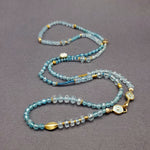 LONG AQUAMARINE AND APATITE BEADED NECKLACE