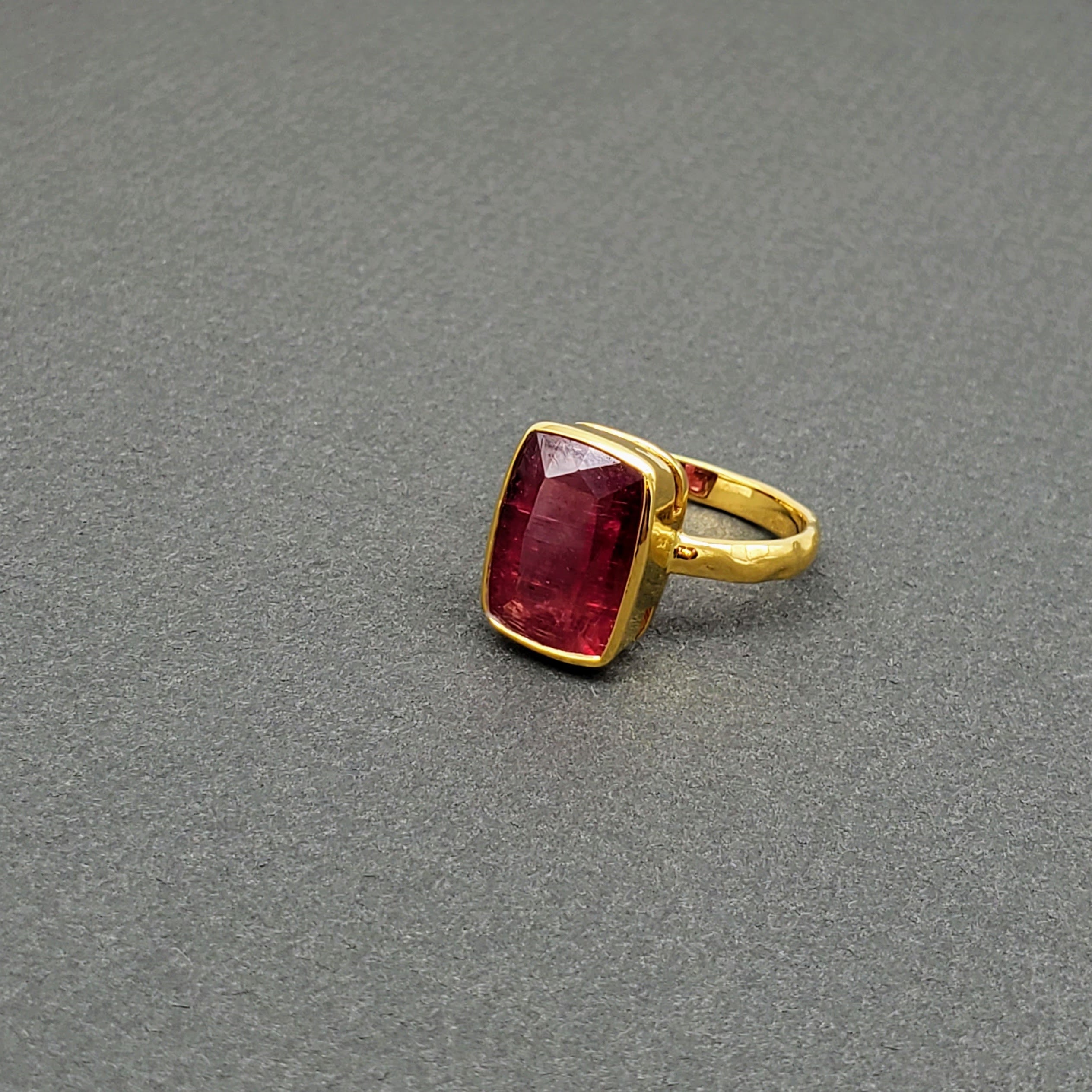 WATERMELON TOURMALINE HAMMERED RING