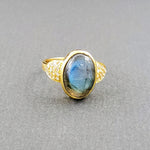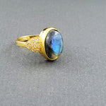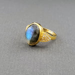 PAVE DIAMONDS LABRADORITE GOLD RING