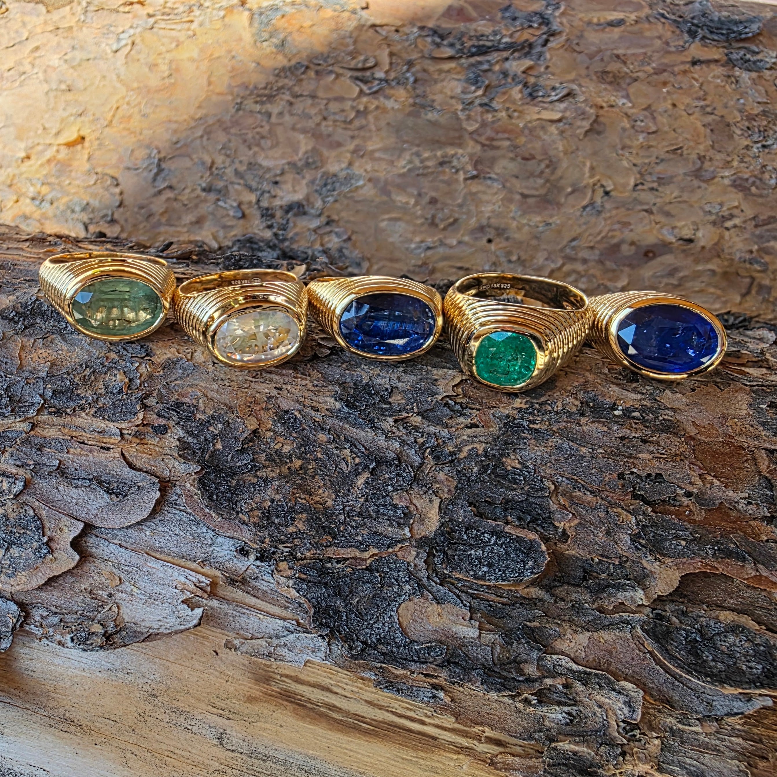 RIBBED GEMSTONES GOLD RING